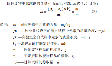 注1:如固體廢物中鎳或銅的含量較高,試樣消解后定容體積可根據實際情況確定。
